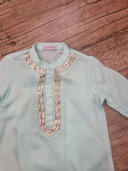 Aqua blue mirror work kurta set